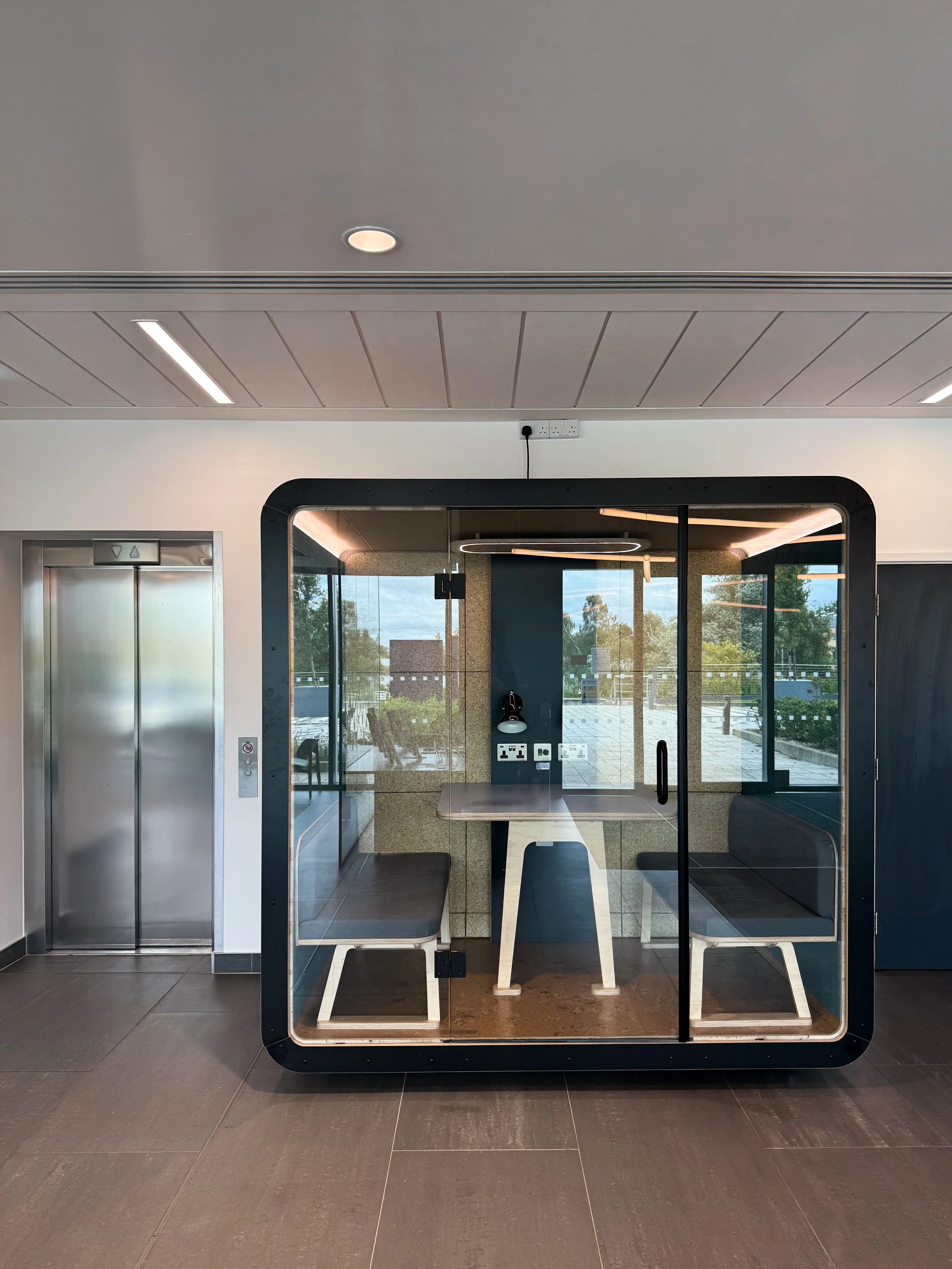 Two person meeting pod for Bio-Innovation Centre in the the Cambridge Science Park.