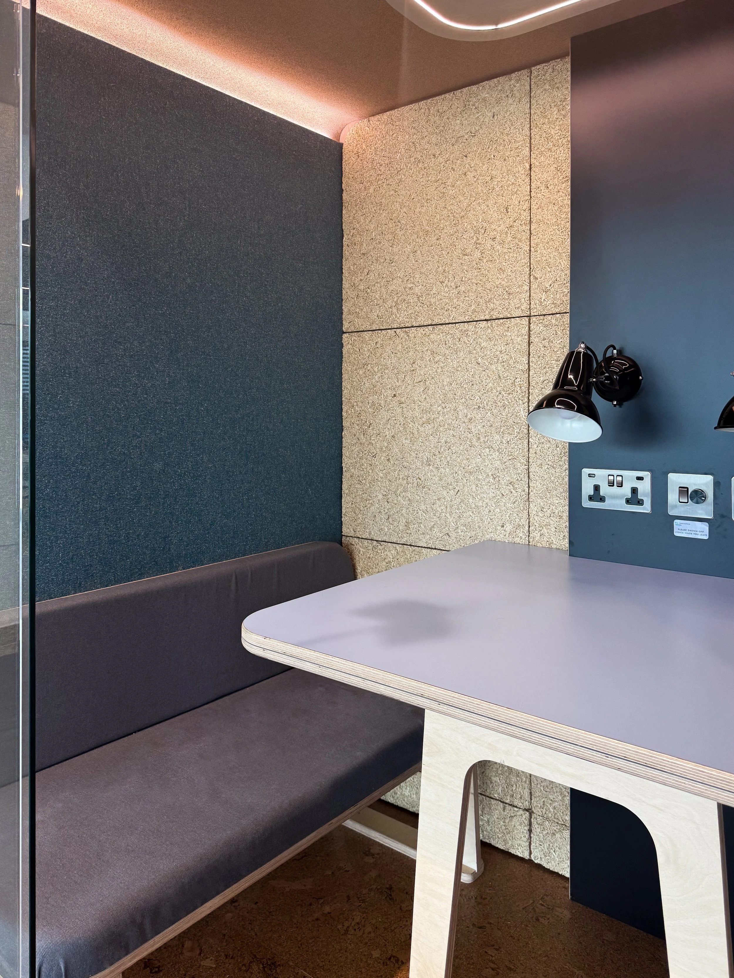 The Customer was looking to create a private meeting space within their lobby. As they wanted the materials of the meeting space to align with their ethos of bio-innovation they reached out to us and we offered them our newest modular product - meeting pod. We delivered and installed the meeting pod within hours, and the interior hemp fabric of the pod was colour matched to the company’s colour scheme.