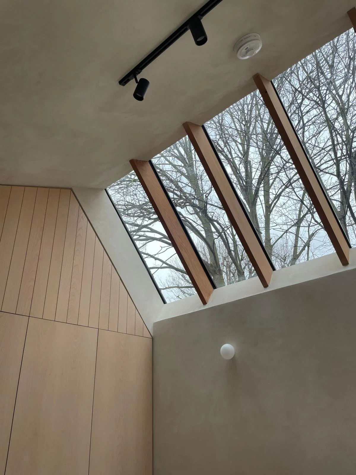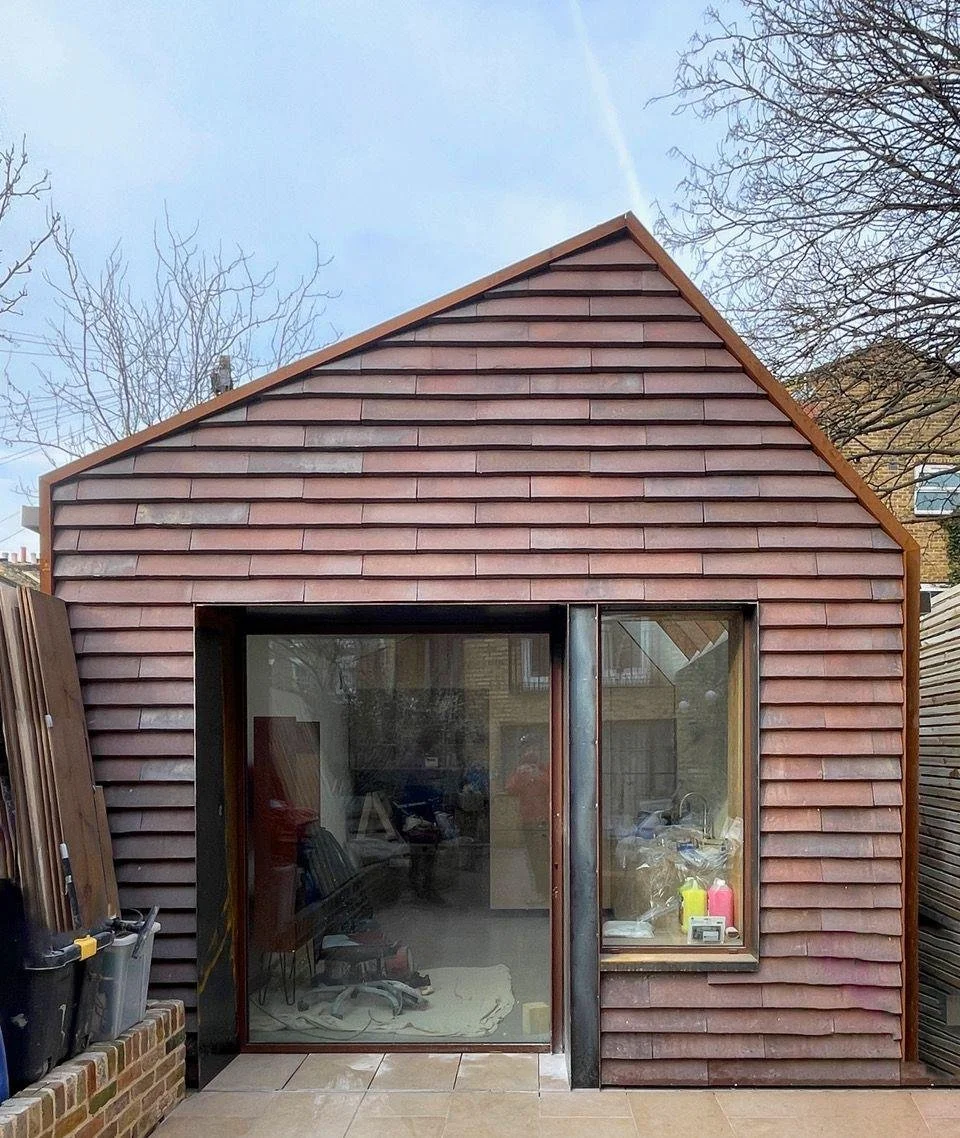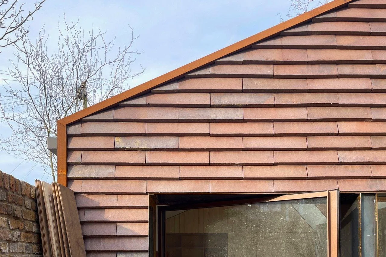The Greenwood Road photography studio, constructed with ADEPT® wall and roof panels, is designed with practicality and natural light in mind. Its uneven-pitched roof includes a north-facing skylight, providing soft, consistent light suited to photographic work. Inside, the compressed earthenware floor and clay plaster finish bring a grounded, natural feel to the space, complemented by custom-built cabinetry that adds essential storage. The result is a workspace that’s functional and quietly cohesive, shaped by materials that feel both practical and inviting.